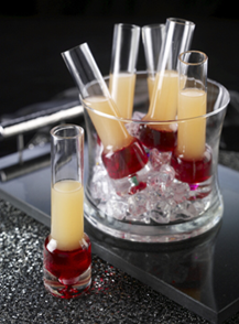 The shooters in the picture below look like they’re served in test tubes, and I guess the whole “mad scientist” thing has a cool Halloween vibe to it. Maybe you can take the laboratory theme and run with it by adding some beakers filled with mysterious liquids. Just make sure they’re drinkable mysterious liquids because, as often happens at a party, someone will try to down it.